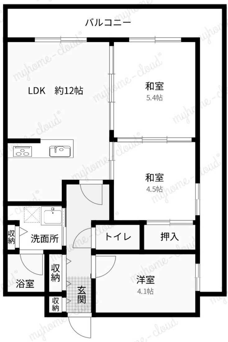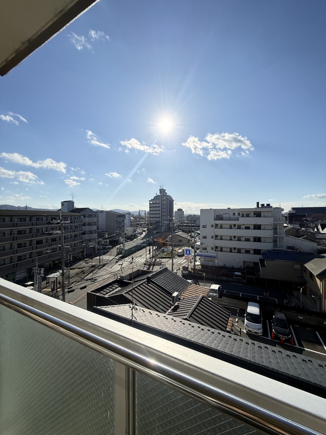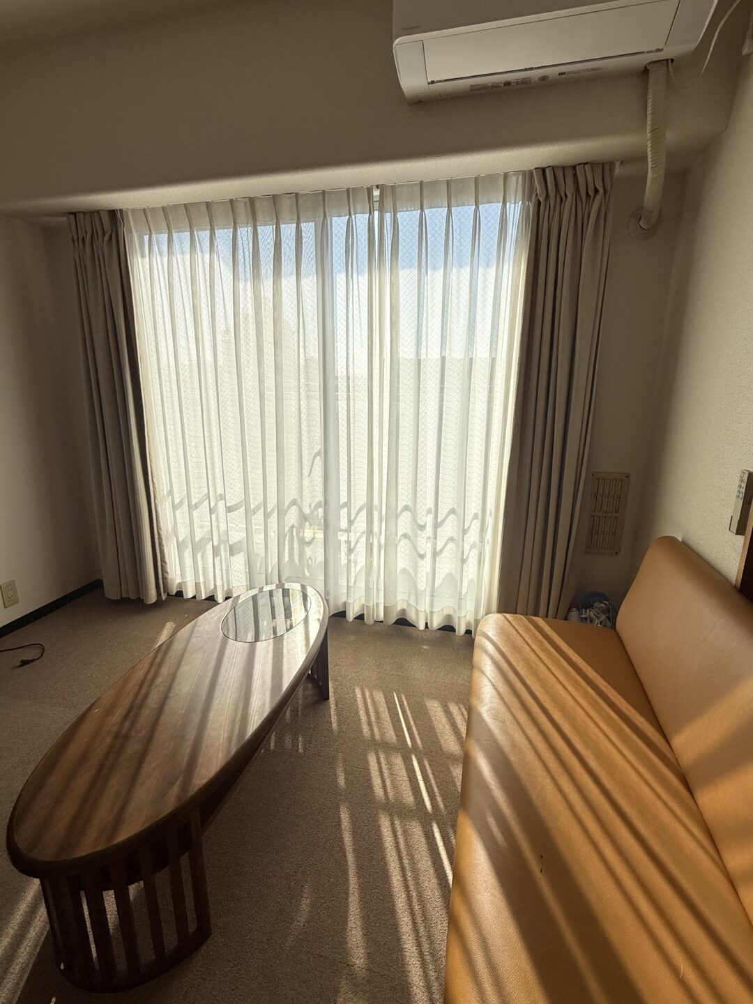 南西角部屋2面バルコニーで陽当り、通風も良好。現状渡しとなりますが、室内大変きれいにお使いです。